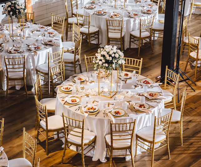 Distinguish your affair by adding candles or floral arrangements. Your guests may enjoy a standing cocktail reception prior to dinner and then sit down at a communal table, accommodating seating up to 60 guests.
